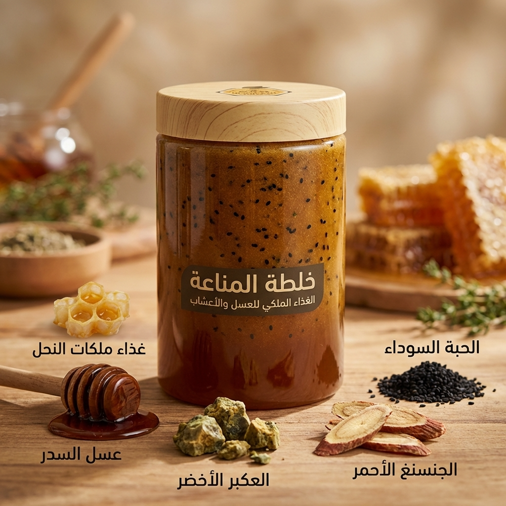 عسل المناعة هو منتج طبيعي مميز تم تطويره لدعم صحة الجهاز المناعي وتعزيز قدرة الجسم على مقاومة العوامل المختلفة. تم اختيار مكوناته بعناية فائقة لتقديم تركيبة متوازنة تجمع بين الجودة العالية والفوائد الطبيعية.